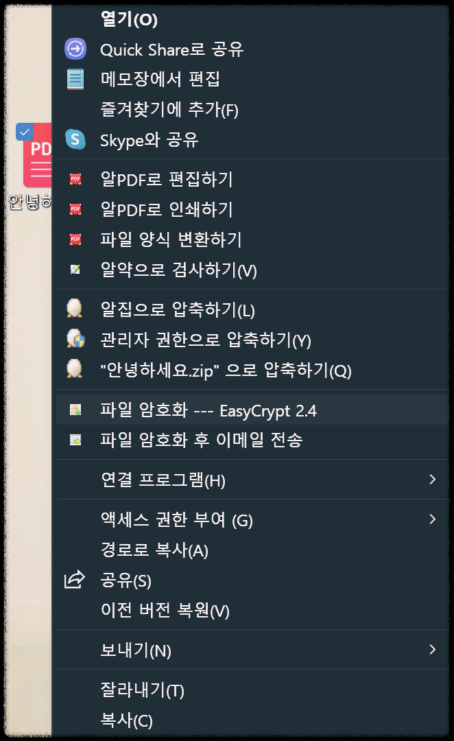 이지크립트를 다운로드하셨으니 계속 사용하시게 될 것입니다. 그렇다면 이지크립트 파일 암호화 방법도 함께 안내드려야겠지요? 이것 또한 매우 쉽습니다. 그대로 따라 하시기만 하세요.
