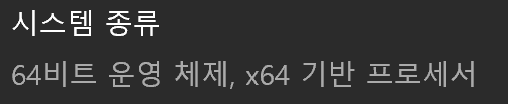 - 확인경로 : 내 PC(바탕화면) > 오른쪽 마우스 클릭 > 속성 클릭 > 장치 사양 > 시스템 종류(64비트/ 32비트) 확인